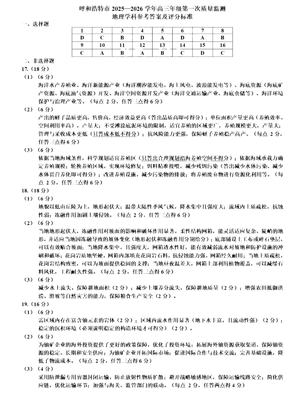 [摘要] 2026届内蒙古呼和浩特市高三年级第一次阶段考试试卷及答案理程碑分享2026届内蒙古呼和浩特市高三年级第一次阶段考试试卷及答案分享给所有同学和老师希望能够帮助考